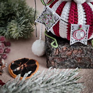 - Yarn “YarnArt Jeans” 50g/160m (55% cotton, 45% polyacrylic): white - No. 62, red - No. 51, green - No. 69, black - No. 53.