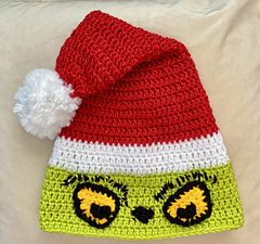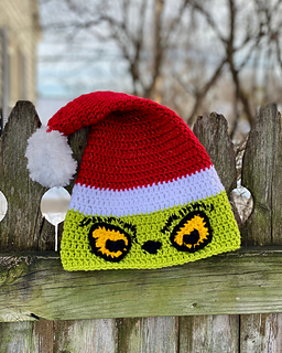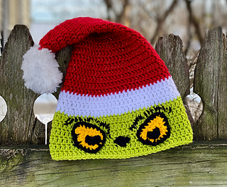 Work up this fun, festive Grinch Santa hat for everyone on your holiday gift list this year! The pattern is quick and easy, making it your go-to handmade gift idea this year (and the next)! Kids and Adult sizes are included in the pattern, so you can make one for kids of all ages. This pattern is also a great scrap yarn pattern, as only small to medium amounts of each color are needed. It works up quickly and is unique gift featuring an iconic character – who could ask for more?!