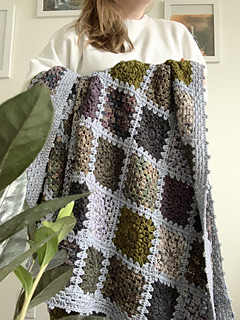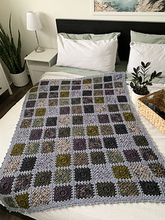 This blanket uses the Sunburst Granny Square and a Tradition Granny Square laid out in an “every-other” pattern to create a kind of patchwork effect.