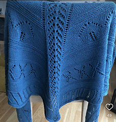 Et stort og varmt sjal strikket i håndfarget 100% naturlig ullgarn. Annet garn med samme anbefalte pinnestr kan også brukes.