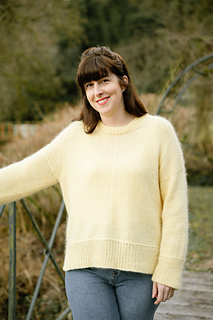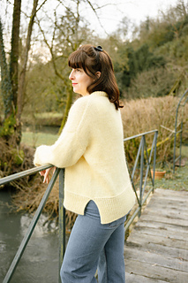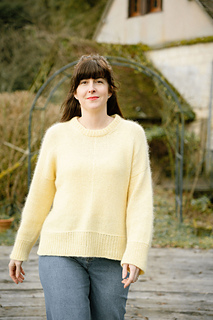 Le pull Guimauve est un pull doudou, tricoté avec un fil de mérinos et deux fils de mohair soie. Son apparente simplicité le rend facile à porter, mais il possède de très jolis détails et des finitions soignées.
