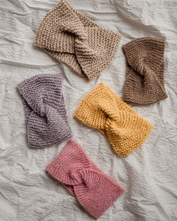 Gunnvors Superenkle Pannebånd strikkes frem og tilbake i rillestrikk og sys deretter sammen med twist som skaper den pene og effektfulle detaljen midt på pannebåndet. Du kan selvfølgelig også bare sy det rett sammen dersom du ønsker å variere uttrykket.