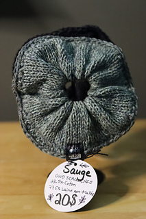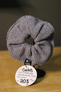 The GWD Scrunchies is a pattern that includes many variations. The basic version uses stockinette or reverse stockinette; a set of textured patterns and colorwork patterns is also available. The pattern is knitted in the round, blocked, then sewn around an elastic with a crochet single crochet stitch. This small pattern combines simple techniques in knitting and crochet, so it’s beginner-friendly for both techniques. You can make the scrunchie in two sizes depending on your preference and add a custom tag if you like.