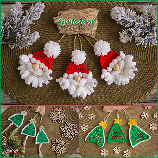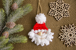 The instructions include a diagram for making a Santa Claus and a simple Christmas tree. Both items can be made with cord or yarn.