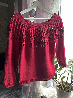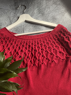 The pattern is worked top-down in the round, so you can easily try it on and decide on the length in the process. You start with a circular yoke with all-over lace, then continue in stockinette!)