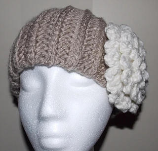 Chunky textured headband with flower pattern included. Pattern can also be lengthened for a neck warmer/cowl.