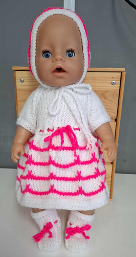 Pattern contains instructions for Dress, Underpants, Booties and Bonnet