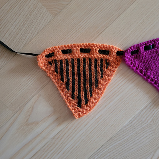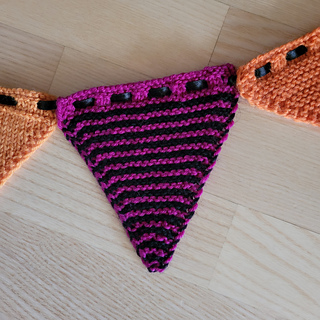 All triangles are knitted flat from top to triangle’s tip. And they all start the same way with the same stitch count and create the holes for the string.