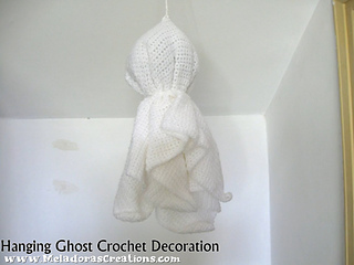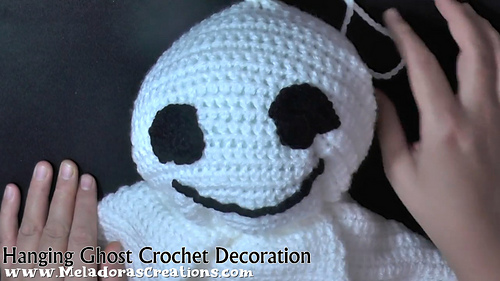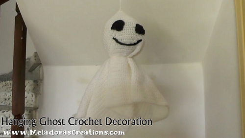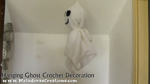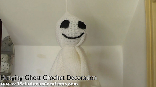 This pattern came about because of the little tissue paper ghost I used to make when in elementary school. I thought it would be super easy to make with yarn and it is. This is what I came up with and the kids love him!