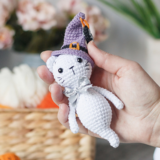 Amigurumi crochet Halloween Ghost Cat Pattern is available in ENGLISH language (US terms).