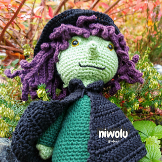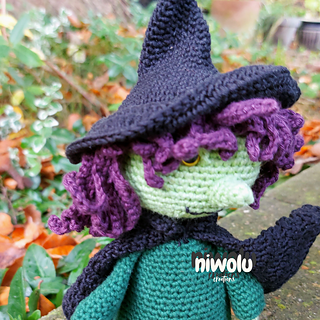 Get this crochet PDF pattern to make your own little witch for Halloween.