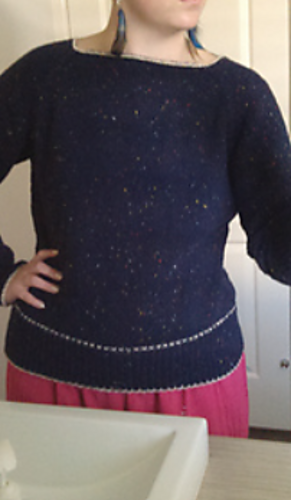 This is a very basic sweater pattern, using simple techniques to create a slightly shaped body. The raglan design will fit most people quite well, but feel free to omit the body shaping if you want.