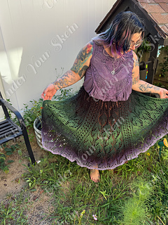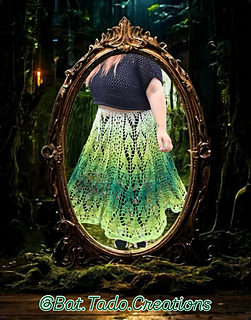 The Hamadryad Skirt is a made-to-measure crochet pattern featuring a repeating leaf motif with front post stitches and popcorns. Fully written and fully charted, this versatile design can be customized to any length, finished with either an elastic or drawstring waist. The drawstring option also allows it to be worn as a poncho, beach cover-up, or dress. Notes are included for adding a side slit or for making it into a wrapped skirt.