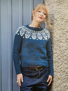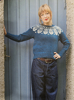 Tröja med rundstickat ok. Tröjan stickas uppifrån och ned med förkortade varv i resåren i nacken.