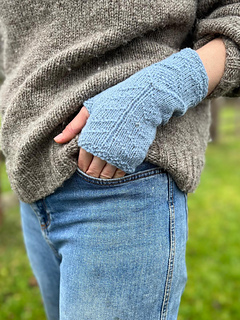 A beautiful pair of fingerless gloves perfect for beginner knitters. Pattern is created with simple purl and knit stitches. Knitted flat and sewn together.
