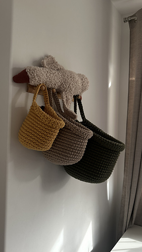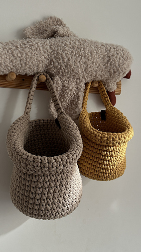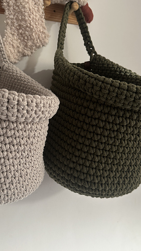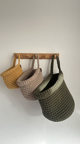 A set of modern crochet hanging baskets that combine practicality with style. Their soft structure and natural cotton texture bring warmth to any space, while the minimalist design makes them perfect for organizing everyday items in the kitchen, bathroom, nursery, or hallway. With adjustable sizing, you can create baskets tailored to your needs — from small storage for accessories to larger pieces for household essentials. A versatile and timeless addition to a cozy, organized home.