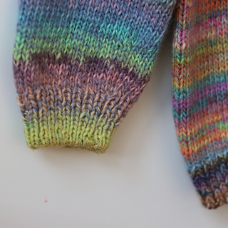 The HAPPY Cardigan Mini is a warm, cozy cardigan with a generous fit. It is knitted top down with raglan increases. By knitting with two strands of gradient yarn, this colourful mix of shades is created. This makes every HAPPY Cardigan unique in its colour pattern.