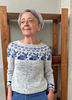 This sweater is worked seamlessly from the top down. First the stranded yoke is worked, then short rows are added to shape the back of the shoulders. The body and sleeves are separated and worked in the round.