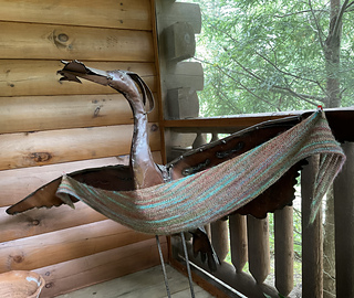 Happy because it’s knitted like a shawl (starts with just a few stitches) to wear like a scarf, which means you don’t have to make a swatch, you don’t have to cast on a zillion stitches and you can just knit until you run out of yarn or like the size.