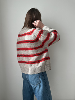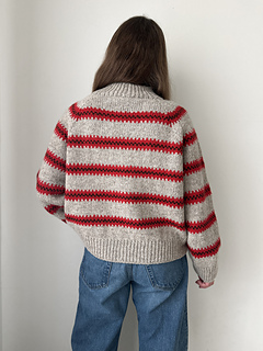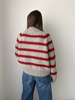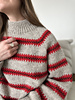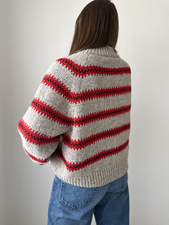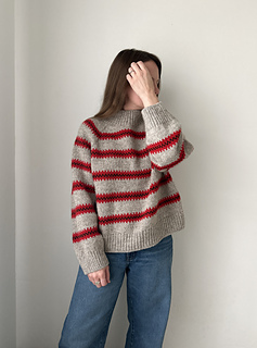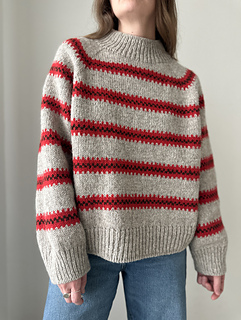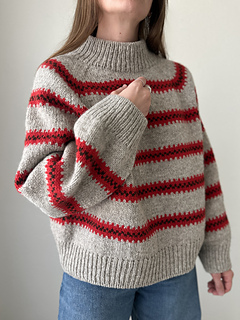 The Harbor Sweater has around 13½-14¾“ [34-36.5 cm] of positive ease for sizes XS-L and gradually less positive ease for sizes XL-5XL. Sizes XS (S) M (L) XL (2XL) 3XL (4XL) 5XL correspond to a bust circumference of 30 (34) 36 (40) 44 (48) 52 (56) 60” [76 (86) 91 (101.5) 112 (122) 131.5 (140) 152 cm]. For example: If you measure a 34” [86 cm] bust you will make size (S) with a finished bust circumference of 48” [120 cm]. Sample shown modeled is 5’ 2” [157 cm] tall wearing Size (S) with approx. 14” [35 cm] positive ease.