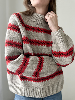 400 (400) 400 (500) 500 (500) 600 (600) 600 g Hillesvag Luna (100 g = 218 yds) in colorway 450 (MC), 4 (4) 4 (5) 5 (5) 6 (6) 6 skeins