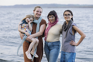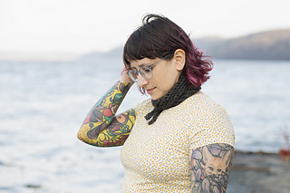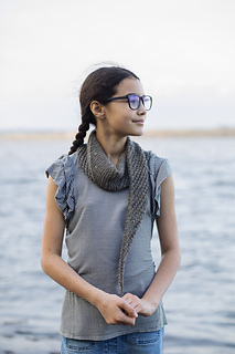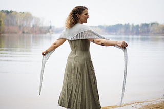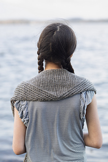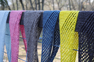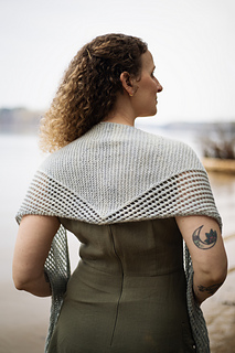 Inspired by weatherworn boards along a dock and fishermen’s netting, Harborside gently nods to its inspiration with garter ridges and mesh. It features a central garter triangle flanked with traveling eyelets - a triangle within a triangle. Simple and soothing, this piece also features an unusual center-out construction, casting on at the center and decreasing to each tip.