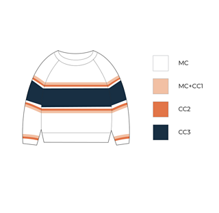 このプルオーバーは4色の異なる色を使ってデザインされています。