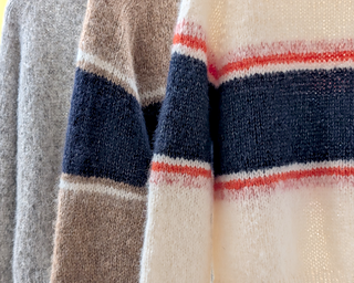 初級者の次のステップとして楽しめるトップダウンセーターです。輪編みで身頃・袖を続けて編み、配色ストライプを楽しみながら完成させます。