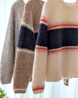 This pullover is knit top-down in the round, starting with a back-and-forth yoke with raglan and neckline shaping. After joining in the round, continue the body to the hem, then knit the sleeves. Finish by picking up stitches around the neckline and working 1×1 ribbing.