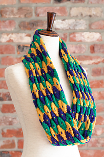 A festive accessory for Mardi Gras in 3 yarn weights.