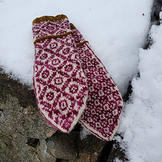 Votter i damestørrelse med mønster som jeg tidlige har laget sokker i, som sokkene heter også dette Harmoni.