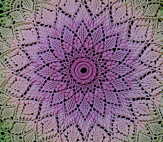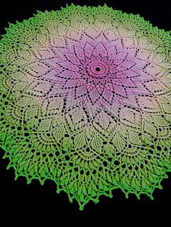 Your tension will determine things like hook size, yardage, finished size, and height of stitches. Any of these things can be adjusted as needed. Using recommended thread and hook this pattern will use minimum 620 yards / 600 metres of thread. And your finished doily will be about 22” / 56 cm in diameter.