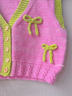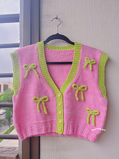 The Harmony Vest is the perfect blend of classic style and feminine charm. This slightly oversized vest is intended to have 10 to 15 cm of positive ease with a feature of beautiful cable details around the waist ribbing and delicate ribbons running through the body, making it an eye-catching addition to any wardrobe. Designed with adventurous beginners in mind, this pattern is ideal for those with a solid foundation in knitting or anyone eager to start reading knitting charts. The simple yet elegant cable design provides a satisfying challenge and a stunning result.