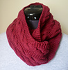 ‘An infinity Scarf with columns of twisting cables on a garter stitch background’