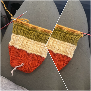 • Harvest Hues Socks celebrate the colours of autumn — rust, olive and cream dancing in warm stripes. Worked toe-up with playful colour blocks and soft transitions, perfect for using small skeins or leftovers. A cozy, modern design that radiates handmade charm. ️ *