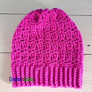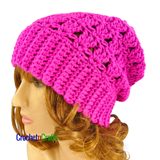The easy crochet hat pattern is given in one size only. However, a stitch multiple is included along with a crochet hat size chart to make it easy to customize for any size you need. Thus, it is also easy to substitute your favorite yarn and hook size and make adjustments as needed to obtain the size you need.