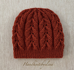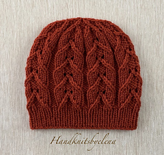 This hat is knitted in a very attractive stitch that combines twisted stitches and lace. It’s very enjoyable and easy to knit! The pattern includes both written instructions and a chart for the stitch.