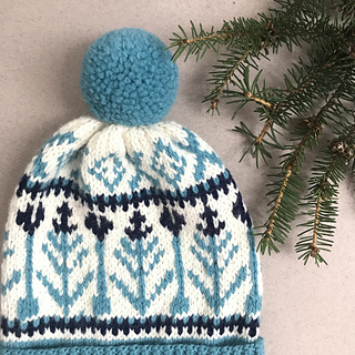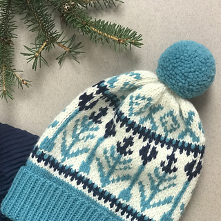 По данной инструкции вы сможете связать зимнюю шапочку с жаккардовым узором и украсить ее помпоном. Модель шапочки – бини с фиксированным отворотом и удлиненной макушкой.