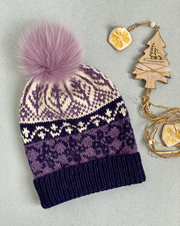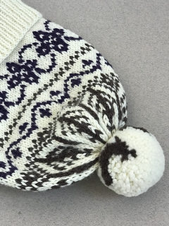 По данной инструкции вы сможете связать зимнюю шапочку с жаккардовым узором и украсить ее помпоном. Модель шапочки – бини с фиксированным отворотом и удлиненной макушкой.