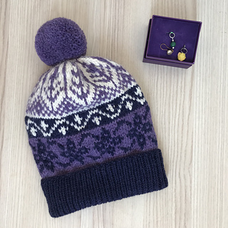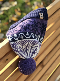 Использование пряжи с содержанием альпака, а также выполнение двойного отворота резинки и жаккардового узора дает эффект двойного полотна, что делает шапку более теплой и не продуваемой.