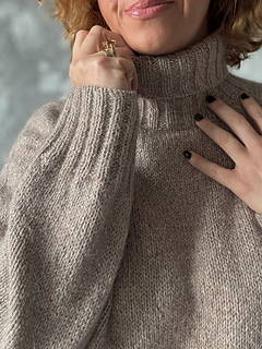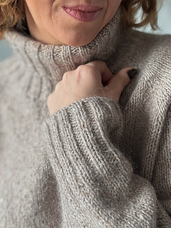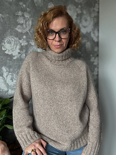 The Hayden sweater is knit from the top down, seamlessly. It begins with shaping a turtleneck, mock