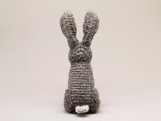 If you use the recommended yarn, your hare will be 7.5 inch / 19 cm measured from the bottom to the tips of the ears.