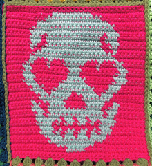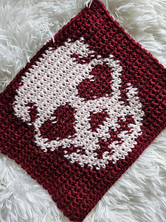 This pattern has been updated to include full written instructions for the Heart Eye Skelly pattern. You will receive the full written pattern including photos, a printer friendly version without photos, and a pdf with just the chart only.