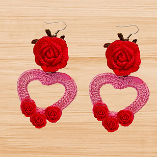 This crochet earring pattern combines heart and flower motifs into a delicate design.