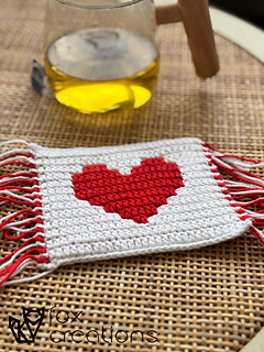 Due to the success of the tapestry tutorial on our website (under Crochet 101), we have decided to release the Heart Mosaic Coaster pattern for all you lovers out there! Perfect for Valentine’s Day or just anyone who hearts a heart motif. This is not a mosaic tutorial – you will need to know how to read a Mosaic Chart (there is no line-by-line written pattern). Stitch Fiddle link and printable chart included. The finished coaster (unblocked) is approx. 13cm x 11cm.