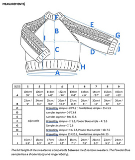 Note: The quantity of 2 different yarns for the powder blue sample is an estimate based on sizes 3 & 4. Mohair yardage doesn’t always compute directly to go with the companion yarn.