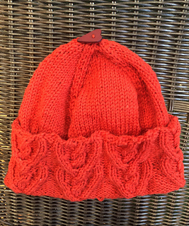 This hat is designed in a single size to fit an adult head. Sizing may be adjusted by changing needle size (larger needle=looser fit) or by adjusting the number of cast-on stitches by adding/subtracting stitches in sets of 16 to work the cabled brim. Please note that increasing the size of the hat will use more yarn.