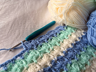The blanket can be made in a range of sizes, from a cosy baby blanket to a generous throw, making it a versatile project for gift–giving or for adding a handmade touch to your own home. With clear instructions and a straightforward repeat, this pattern is suitable for an advanced beginner ready to try out a lacy stitch pattern, while still being enjoyable for more experienced crocheters.