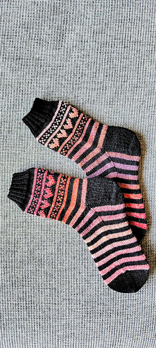 Keep in mind that most knitters knit tighter when doing colorwork. Sample was made using 2.50 mm for the regular stockinette stitch and 3.00 mm for the stranded colorwork
