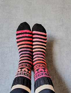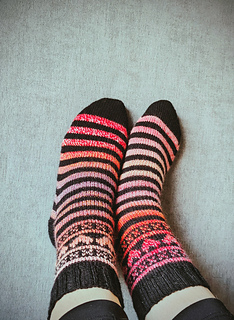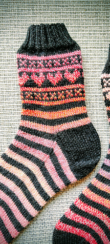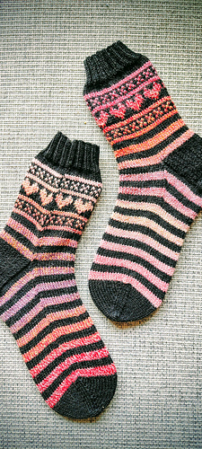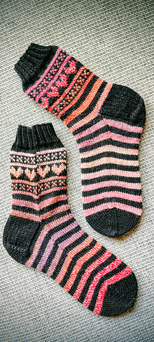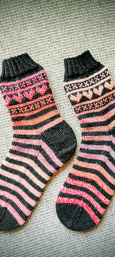 Let’s get ready for Valentines Day (or any day you wan to wear some awesome socks! These easy socks are a great way to start your colorwork socks journey. Working only a small section in stranded colorwork makes these stripey socks fly off your needles.